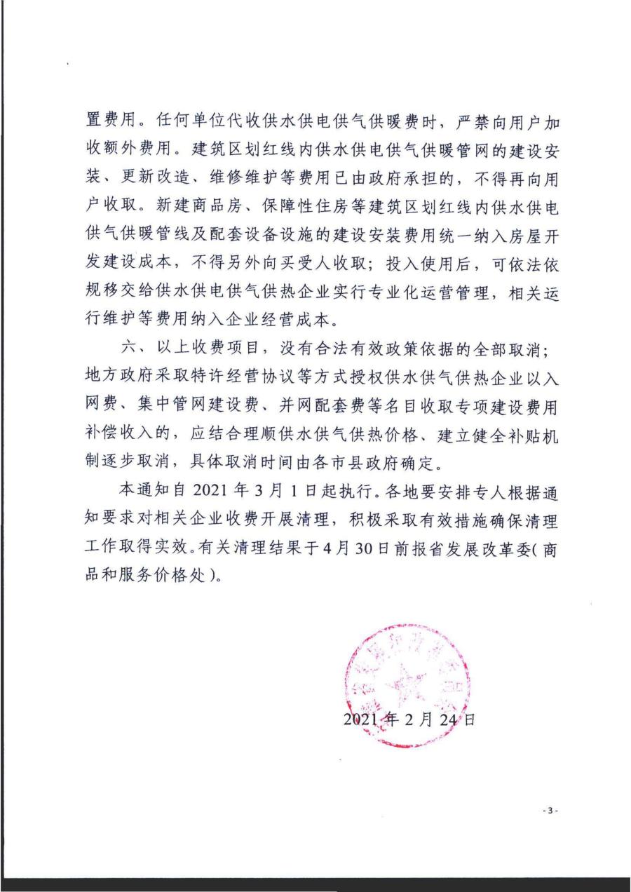 安徽省發展改革委發布關于清理取消城鎮供水供電供氣行業有關收費項目的通知》皖發改價格函【2021】60號