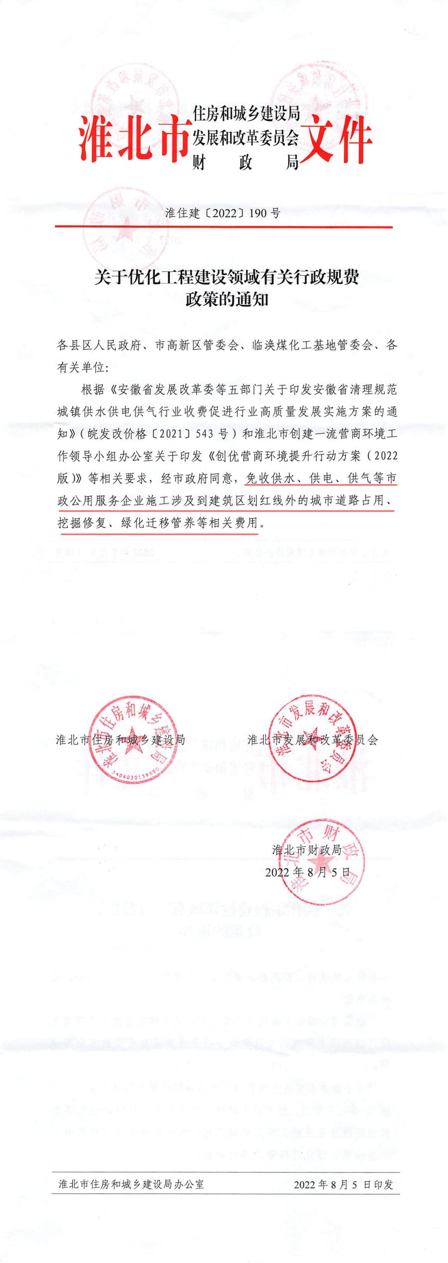 關于優化工程建設領域有關行政規費政策的通知 淮住建【2022】190號