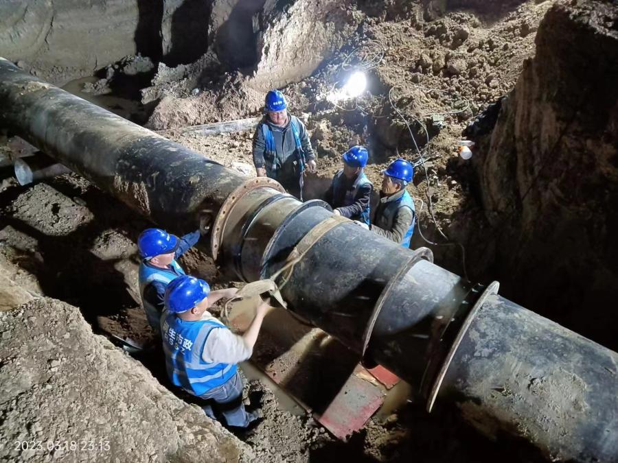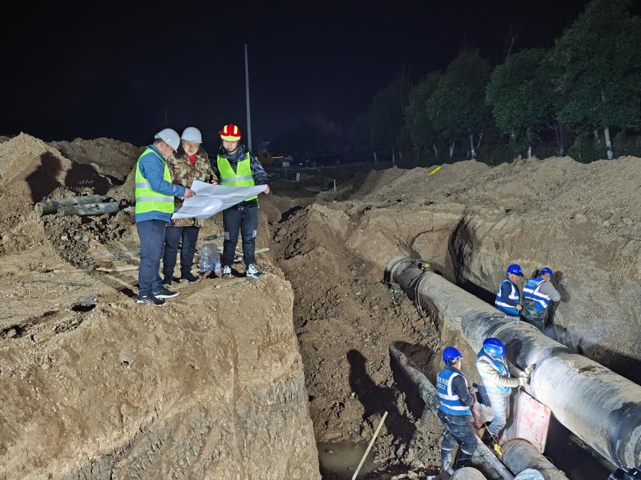 因施工影響導致管網沿線區域短暫停水,市水務集團前期通過媒體、網站、微博等平臺進行宣傳告知。企業用戶逐一上門進行通知,優化施工方案,施工物資提前調配,錯峰施工,把因停水給企業生產和居民用水帶來的影響降至最小。為保證管網遷改的順利進行,水務集團供水公司組建專業力量針對每個遷改點制訂了詳細的工作預案、專項施工方案和應急預案,明確涉及遷改的相關工作要求,提升工作效率,確保工程質量和施工安全。公司管網管理部多次確認管線位置走向并開展技術交底。對于預埋管道交叉的部分采用人工探挖,對開挖到的第三方管線采取有效的保護措施,待管線探明后采用機械開挖,確保施工現場安全有序。施工中,加強與業主和監理就突發狀況的溝通和協調,加強施工現場工程質量和安全監督,完善過程資料,優化細化遷改工序。做好停水計劃,將停水時間縮減到最短,停水范圍優化到最小。項目遷改DN800管道口徑,總長度110米。公司投入3施工隊,40余人,采用分段式施工,其中白天進行開挖、鋪設、遷移等工序。為了把因停水給居民帶來的影響降至最小,管網碰頭、合攏等采取夜間停水施工。供水管網的讓道不僅保障了淮宿蚌城際鐵路(淮北段)建設的順利推進,而且改遷后的供水管線質量、沿線水質、水壓安全穩定。