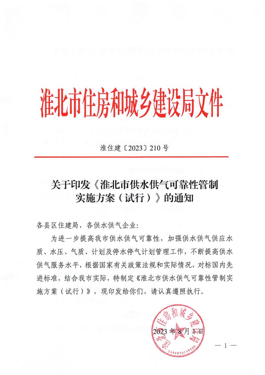 關(guān)于印發(fā)《淮北市供水供氣可靠性管制實施方案(試行)》的通知