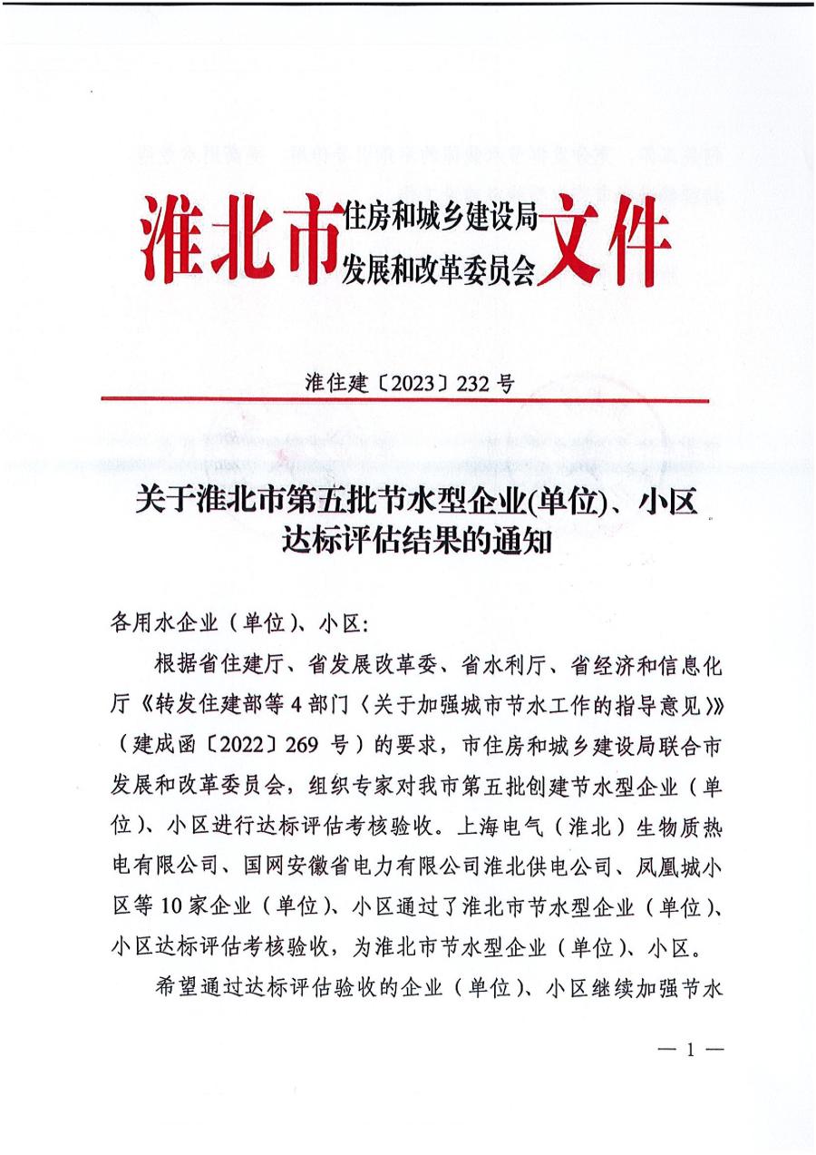 10月23日,接市住房和城鄉建設局、市發改委通知,供水公司通過淮北市第五批節水型企業達標評估考核驗收,被評為:淮北市節水型企業(單位)。