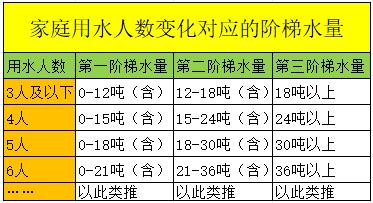一、“多人口家庭”水量標準 單個家庭(戶籍)人口多于3人的,可以憑借相關證明材料申請增加家庭用水基數,每增加1人,分級階梯水量相應增加3立方米。