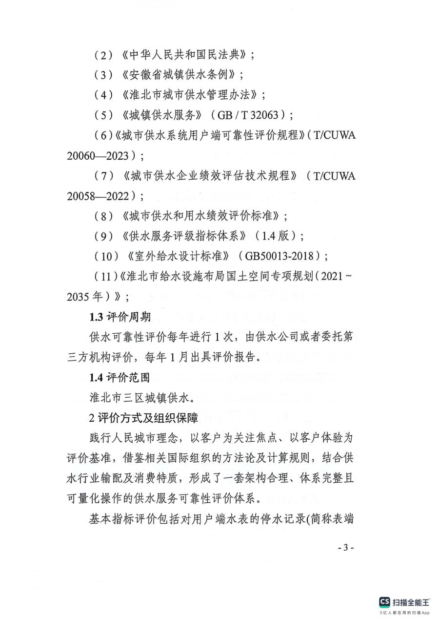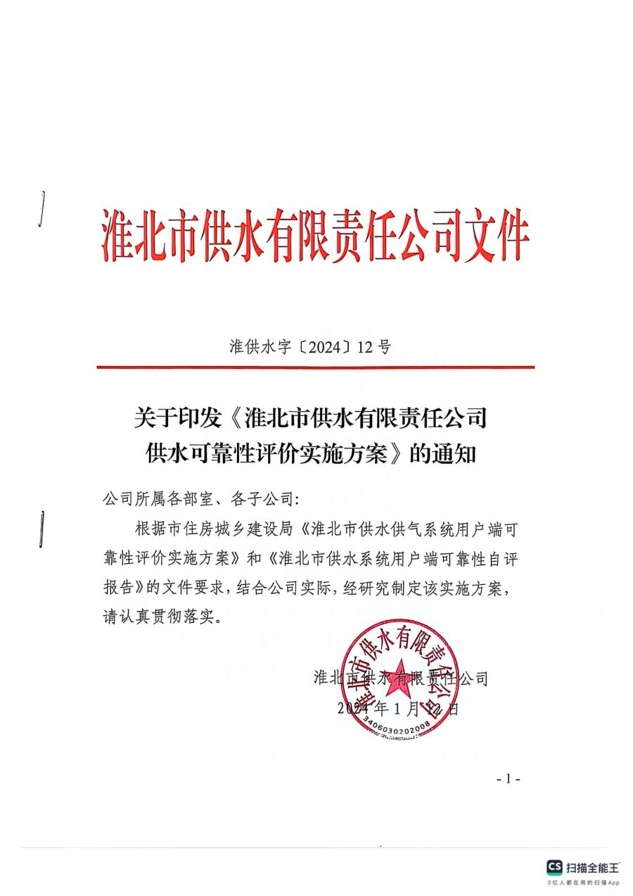 關于印發《淮北市供水有限責任公司供水可靠性評價實施方案》的通知