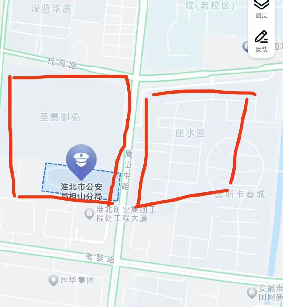 計(jì)劃影響范圍:影響金方麗水苑,圣景御苑,淮北市公安局相山分局