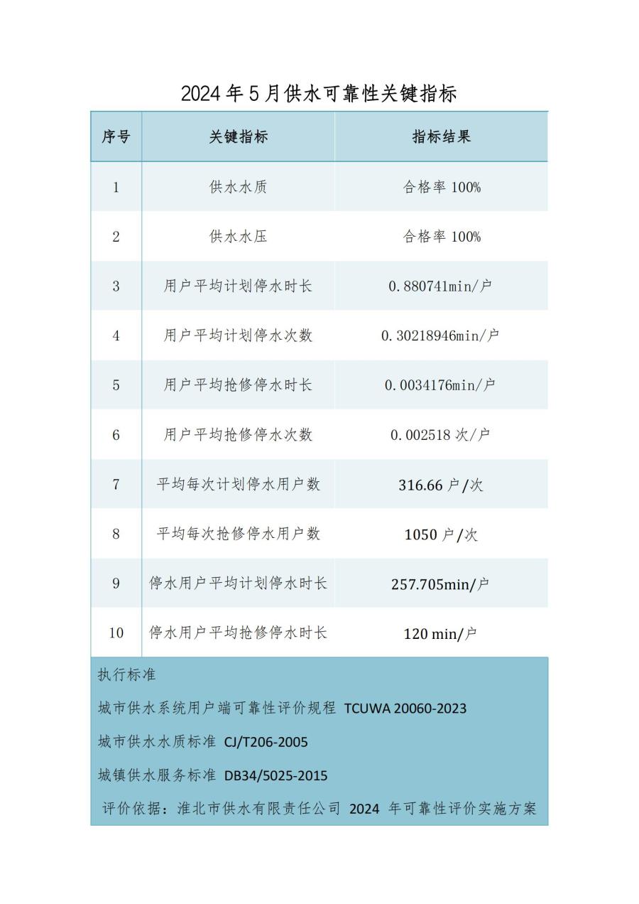 2024年度5月份淮北市供水可靠性關(guān)鍵指標(biāo)